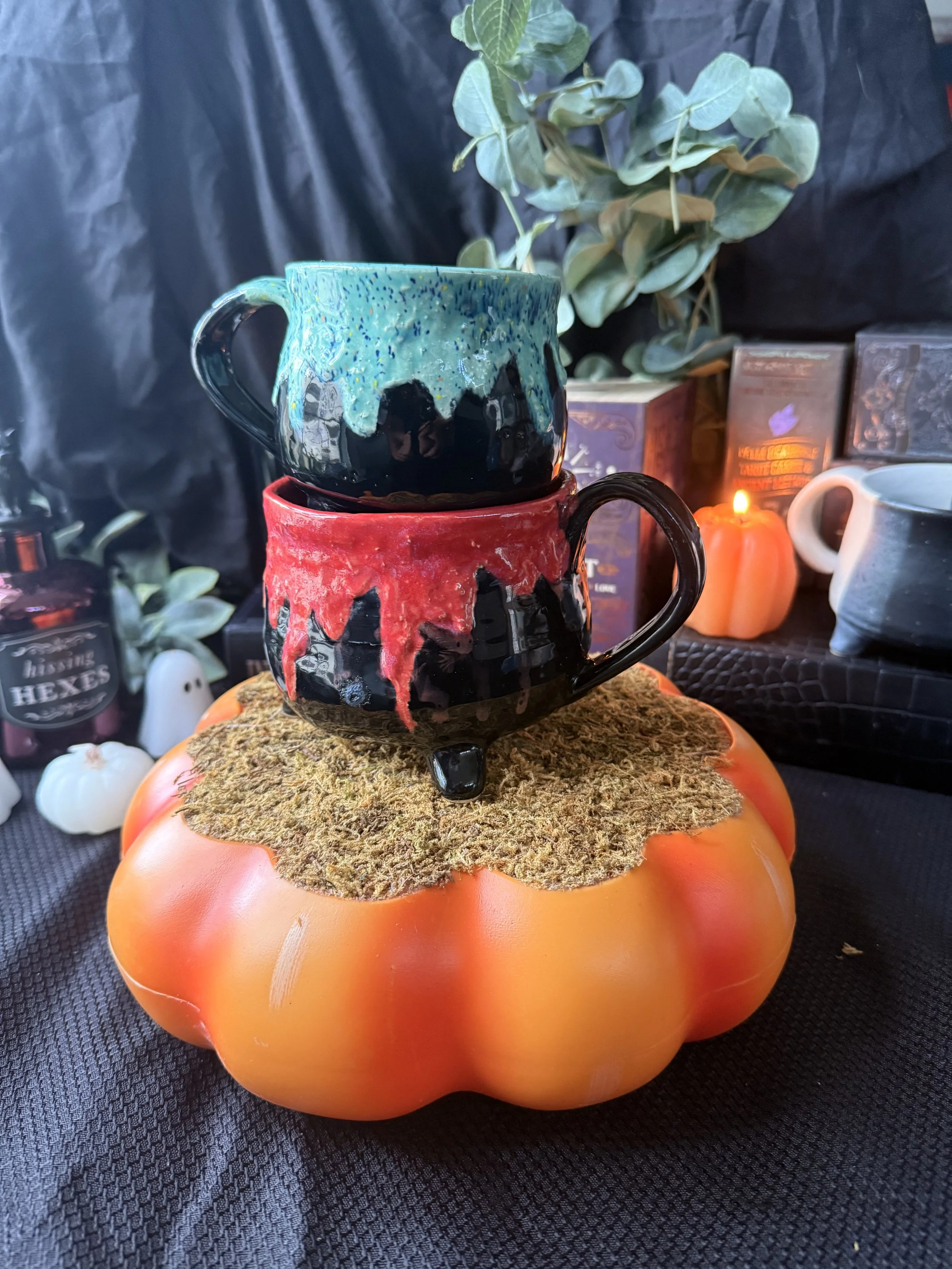 Choose your favorite skull mug color: Toxic Blue or Copper Brown. All mugs are individually hand carved, hand thrown, and glazed meaning they will all be slightly different from each other. If your a mug collector or love artisan gifts this mug is made for you!